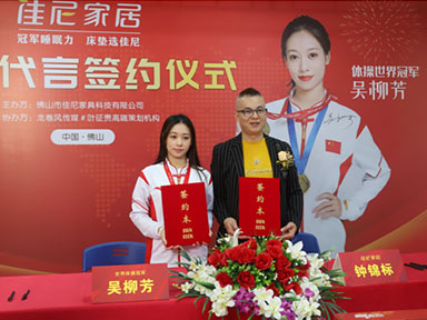 2月12日,佳尼家具與體操世界冠軍吳柳芳簽約儀式在佳尼家具佛山總部圓滿舉行。簽約儀式后,體操世界冠軍吳柳芳將成為佳尼家具2023開(kāi)門紅爆品—冠軍系列的形象代言人,攜手佳尼家具為廣大消費(fèi)者帶來(lái)更時(shí)尚、健康的生活體驗(yàn)。